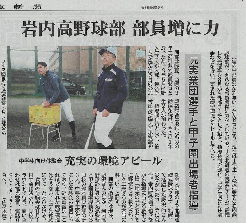 この記事を励みに、今まで以上に地域と一体となって、活動して参ります。今後も岩内高校野球部の応援よろしくお願いしますm(_ _)m